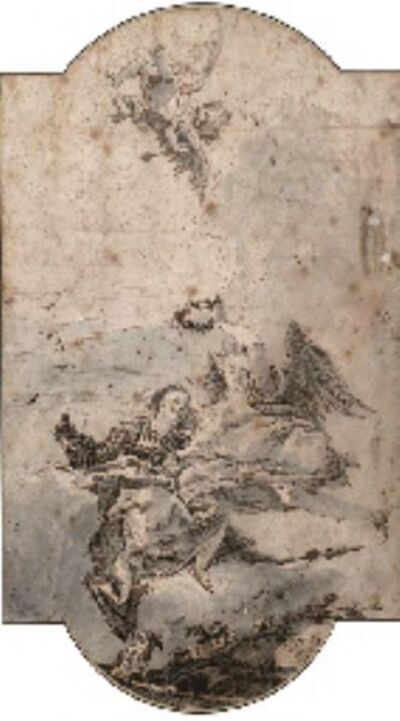 Pencil pen and brown ink and brown wash, heightened with white, within an inscribed border