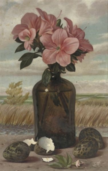 A 'Roemer' of white whine, a pewter plate with hazelnuts, a silver ewer, a beer glass, a tall glass of red wine and a pewter pla