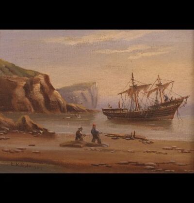 Ships off the coast in rough and calm seas