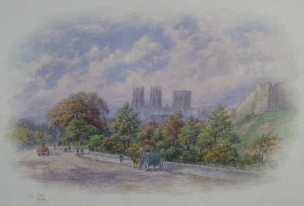 York street scene with Minster in the distance and Ouse river with Guildhall