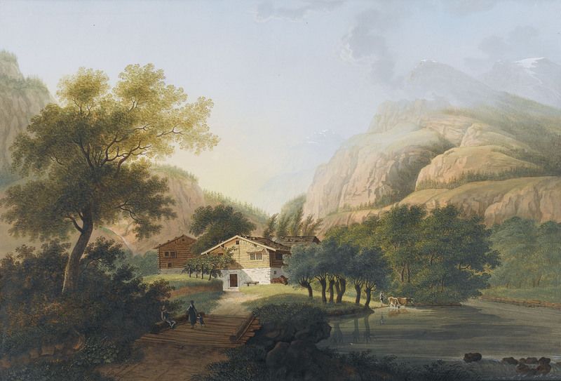 Vue du château d'Ortenstein et de l'Entrée de la vallée Dom letschg