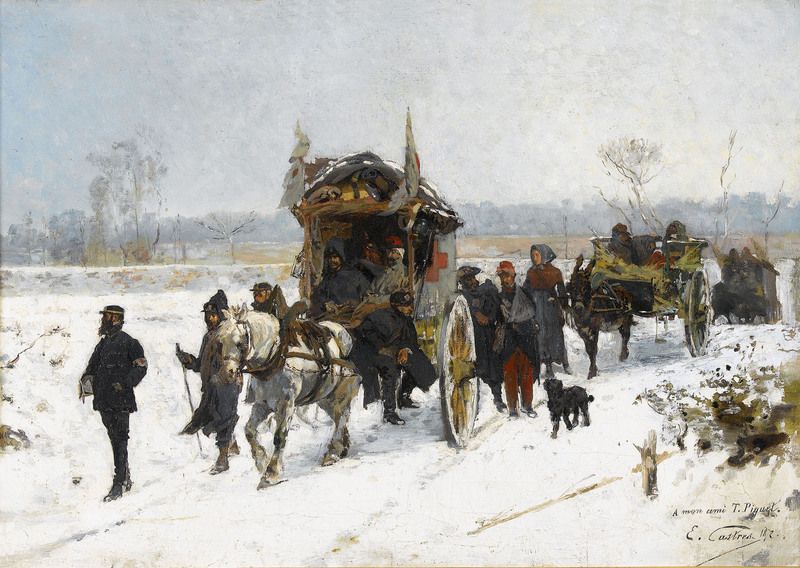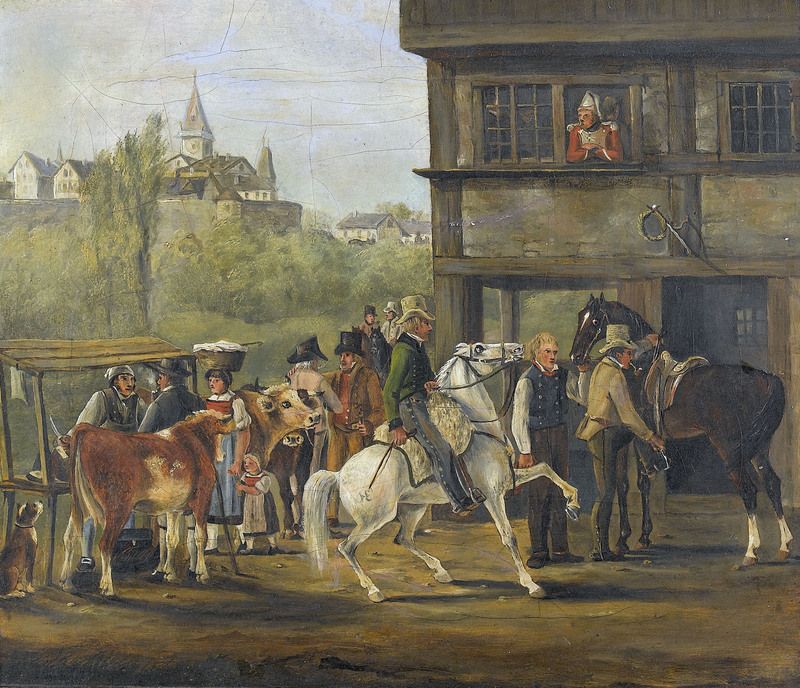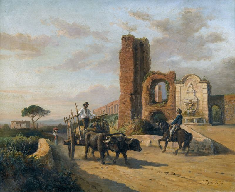 Idyllische Bauernhofszene mit Bäuerinnen im Abendlicht.