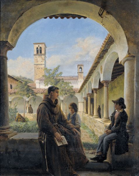 Mönch mit zwei Kindern im Kapuzinerkloster von Lugano.