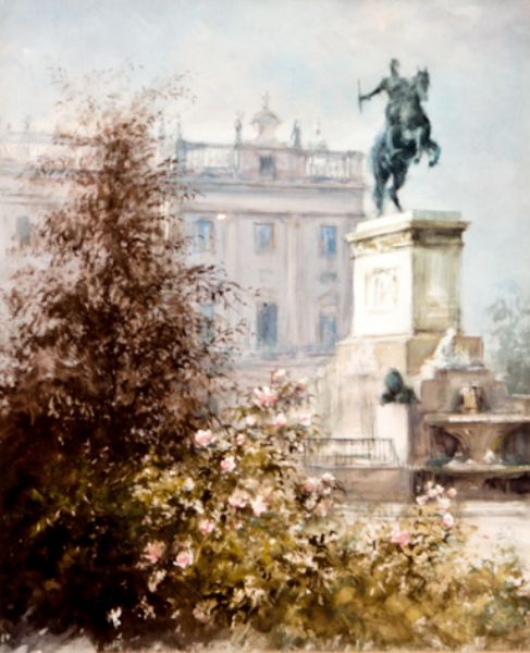 Estatua de Felipe IV con el Palacio de Oriente al fondo