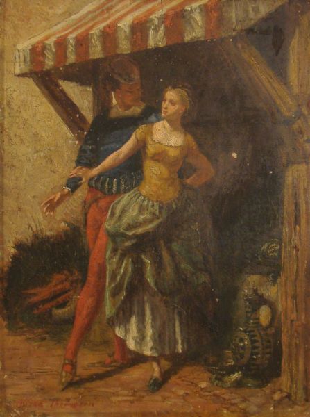 Two lovers under an awning
