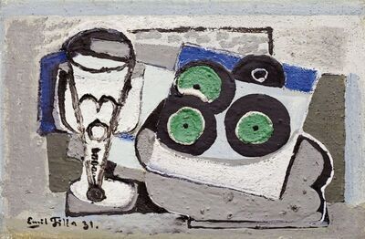 ZÁTIŠÍ S POHÁREM A GRAMOFONOVÝMI DESKAMI