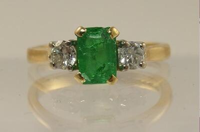 A collection of four silver rings set with emeralds, diamonds, peridot and other gems