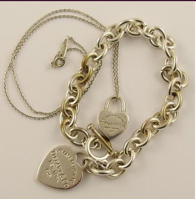 A silver heart shaped pendant stamped Tiffany & Co in turquoise pouch