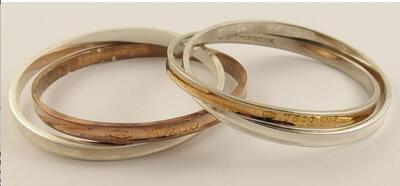 A set of two silver interlinked bangles stamped 925 Tiffany & Co,