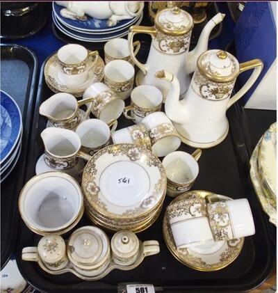 Noritake gilt decorated coffee set to include two pots, coffee cans and saucers, milk jugs, sugar bowls etc