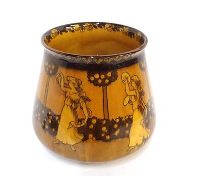 A Doulton 'Morrisian' jardiniere decorated with ladies playing the cymbals and dancing