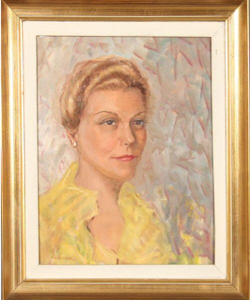 Portrait of a woman reflecting on horseback with her hound in a forest.