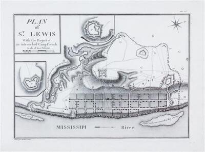 Plan of St. Lewis: with the project of an intrenched Camp French. Paris, 1826. Engraving. Framed and matted.