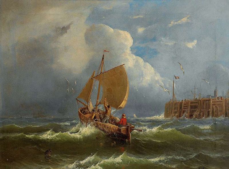 Auslaufendes Fischerboot bei bewegter See