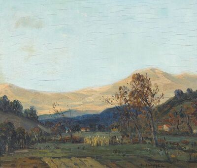 LANDSCAPE WITH THATCH ROOF HOUSE