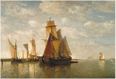 Embouchure avec bateaux de pêche. Riviermonding met vissersboten.