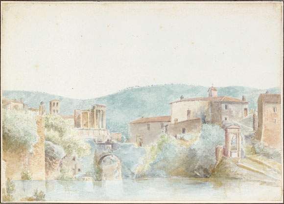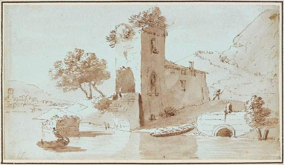Vue animée d'une fortification au bord d'un fleuve : Vérone