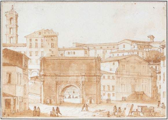 Corniche d'une ruine antique avec haut-relief, proche de l'arc de Constantin