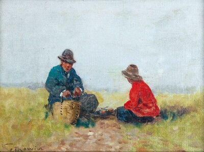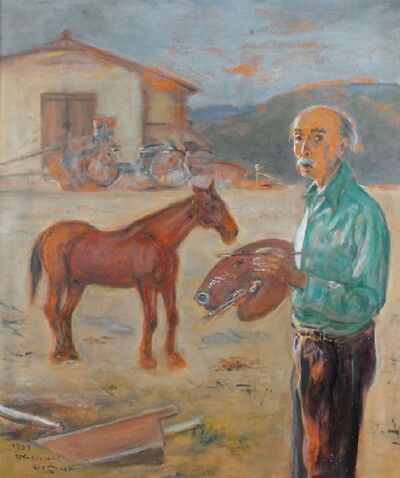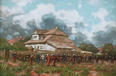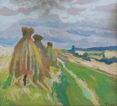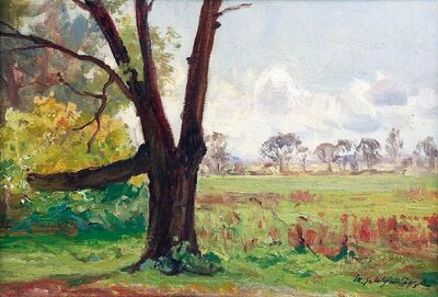 Pejzaż z domem wiejskim wśród drzew, ok.