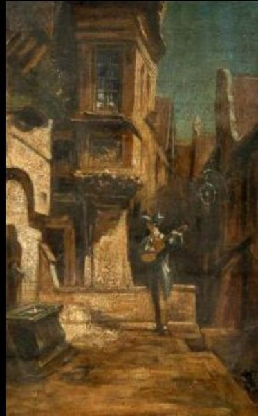 Das Ständchen in mittelalterlicher Stadt.