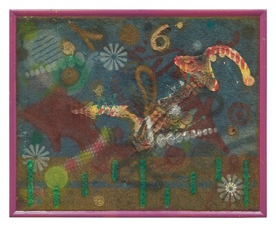 Spray Paint acrylic and epoxy on dyed carpet mounted to wood, in artist's frame