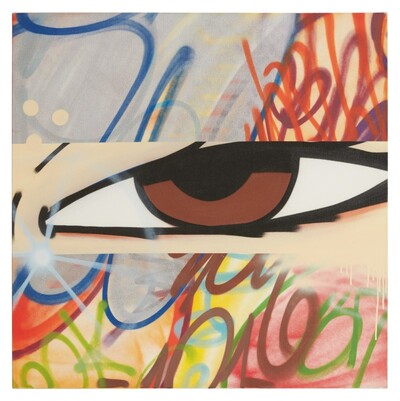Acrylic spray paint and cut polypropylene on canvas and aluminum
