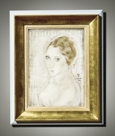 FEMME À LA ROBE VIOLETTE AVEC UN COLLIER DE PERLES