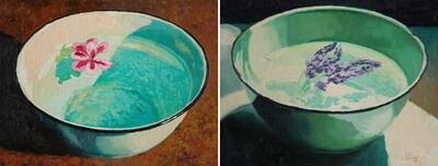 Washing Bowl (Single Pink Flower and Lavender), diptych
